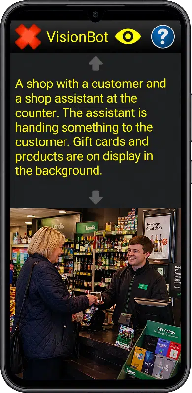 VisionBot can also read printed and handwritten text, signs and labels aloud, helping you access information wherever you are. It can even describe photos you have taken or received, making it easier to understand images shared with you or that you have shared.