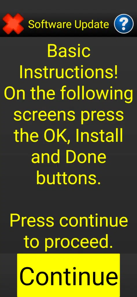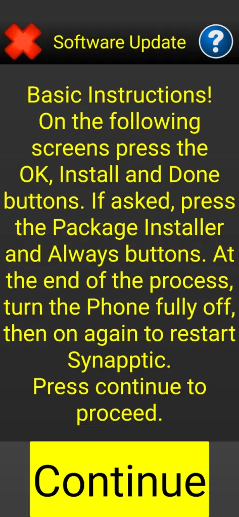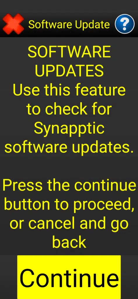 Select this Synapptic option, then press continue at the bottom of the screen. The update will take a few moments to download. When downloaded press the Continue button again on the Basic Instructions screen.