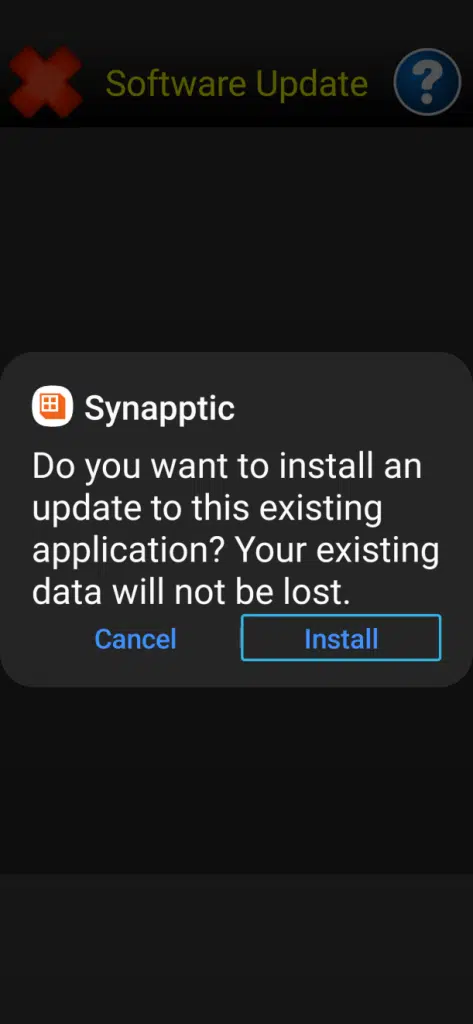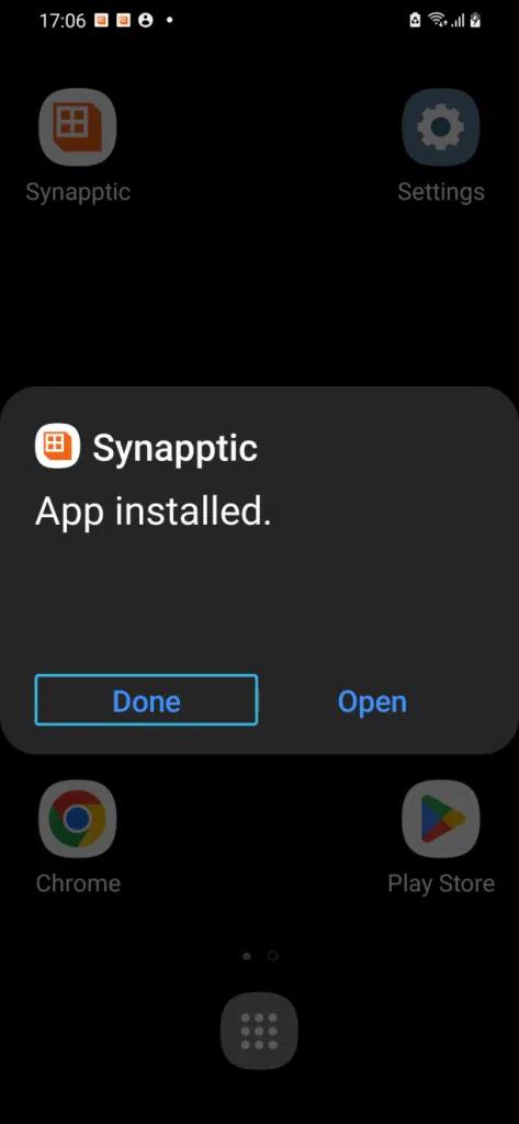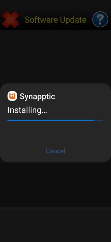 Synapptic should now restart. If not, just select the Synapptic icon from the Android home screen or fully turn your device off, then on again.