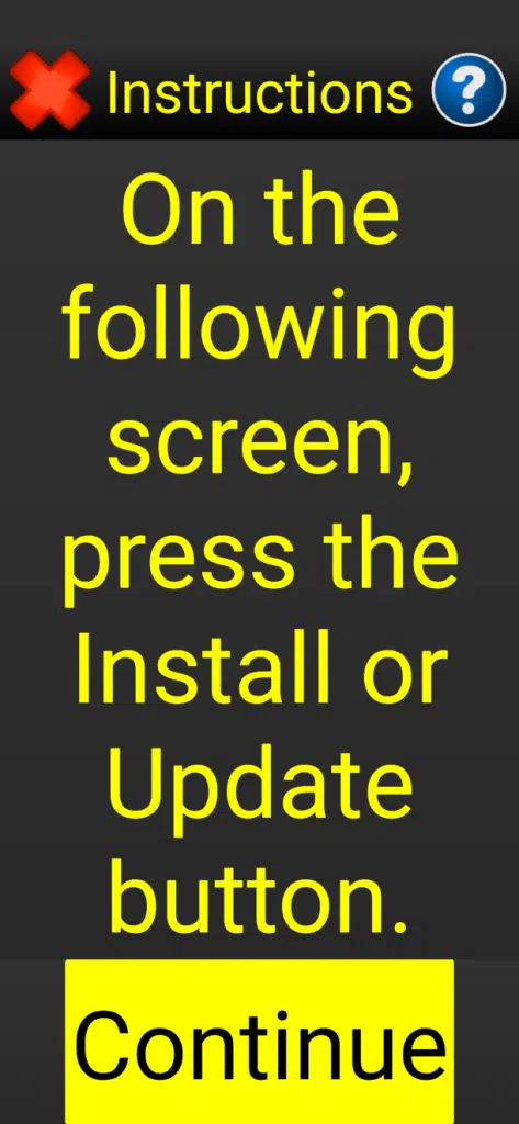 Android will now ask you if you wish to install the update that has been downloaded. Press the Install button to continue. When the installation has finished press the Done button. Note: Do not press the Open button!