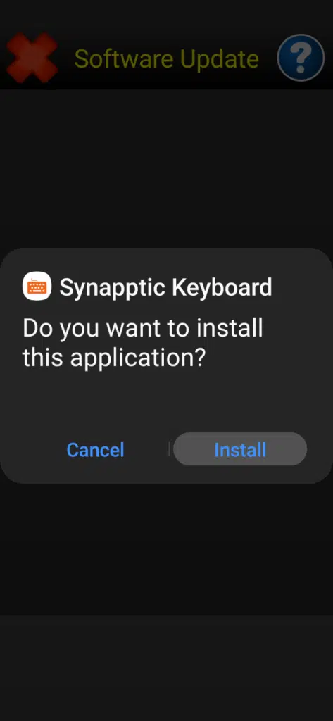 Select the Keyboard option on the Update Helper. The Synapptic Android Keyboard will start to download. When the download has finished, press the Continue button on the Basic Instructions screen. Android will ask if you wish to install the Synapptic Keyboard. Press the Install button to continue and the Done button when finished.